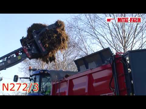 Шасси тандем на параболических рессорах. В разбрасывателе установлена усиленная конструкция управляемого гидравлически напольного транспортера со звеньями толщиной 14 мм. Это универсальная машина. Разбрасыватель оснащен специальным адаптером, с помощью которого можно разбрасывать различные виды навоза, торфа или компоста.